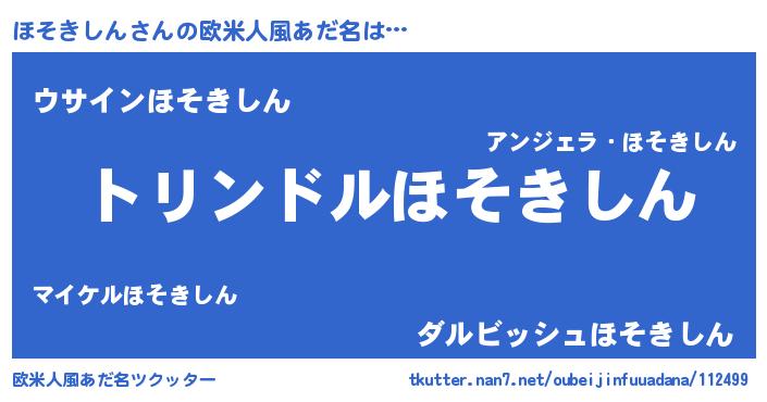 | ポケモン風あだ名 | 『ホソキング』『ヒホソキシン』 |