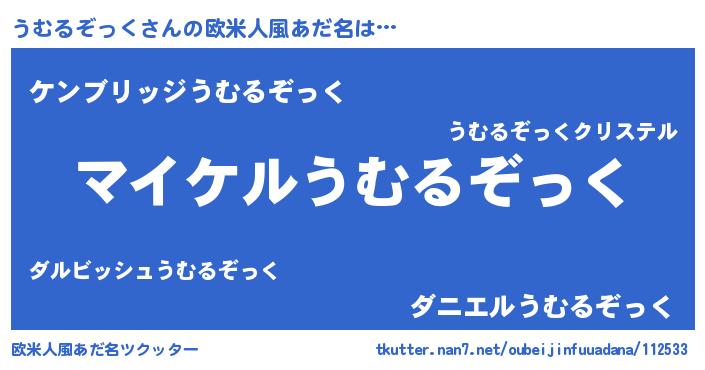 | 男性向けラノベタイトル風あだ名 | 『うむるぞっくの憂鬱』 |