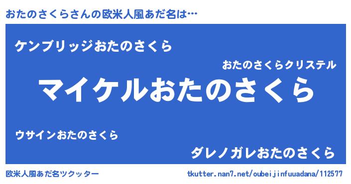 | 胡散臭い通販商品みたいなあだ名 | 『億万長者になれるブレスレット…その名も「おたのさくら」』 |