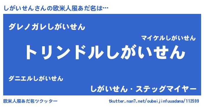 | 男性向けラノベタイトル風あだ名 | 『しがいせん~年齢イコール彼女いない歴の魔法使い~』 |