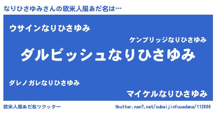 | 男性向けラノベタイトル風あだ名 | 『なりひさゆみという概念が存在しない退屈な世界 』 |