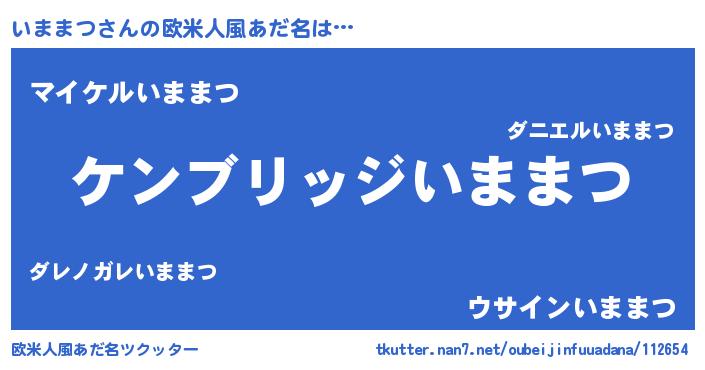 | 男性向けラノベタイトル風あだ名 | 『Re:いままつから始める異世界生活』 |