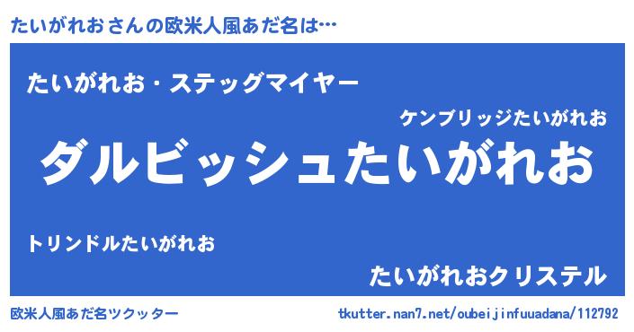 | ヘコむあだ名 | 『たいがれお(小並感)』『酢こんぶ』 |