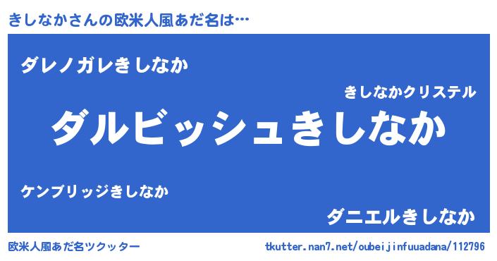 | 男性向けラノベタイトル風あだ名 | 『きしなかという概念が存在しない退屈な世界 』 |
