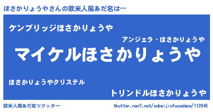 | 男性向けラノベタイトル風あだ名 | 『ホサカリョウヤアートオンライン』 |