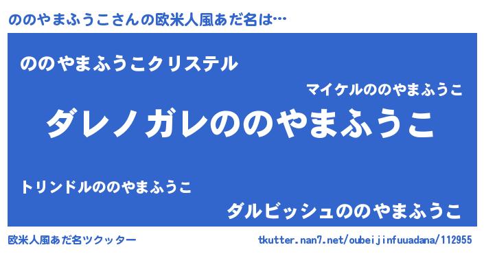 | 男性向けラノベタイトル風あだ名 | 『この素晴らしい世界にののやまふうこを!』 |