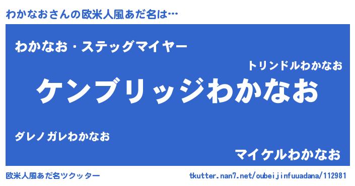 | 男性向けラノベタイトル風あだ名 | 『Re:わかなおから始める異世界生活』 |