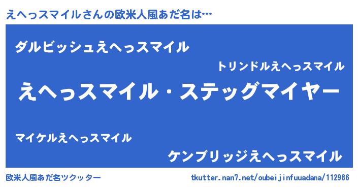| ヒーロー風カッコイイあだ名 | 『ネオエヘッスマイル』『炎刃騎士エヘ』 |