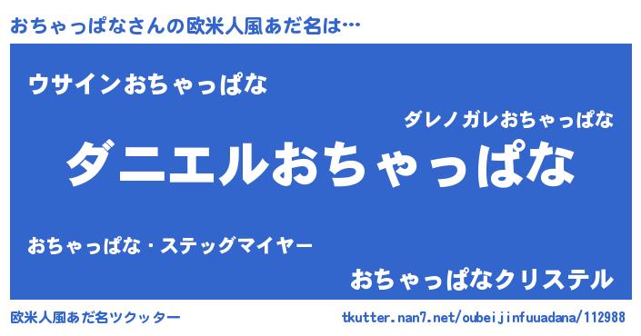 | 男性向けラノベタイトル風あだ名 | 『おまえをオタクにしてやるから、俺をおちゃっぱなにしてくれ! 』 |