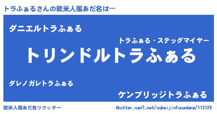 | 男性向けラノベタイトル風あだ名 | 『トラファルスレイヤー』 |