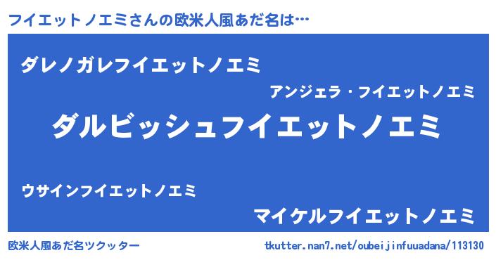 | 男性向けラノベタイトル風あだ名 | 『フイエットノエミという概念が存在しない退屈な世界 』 |