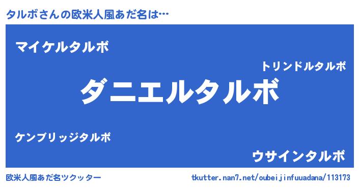 | 女子向けラノベタイトル風あだ名 | 『タルボ恋絵巻』『タルボ様がみてる』 |