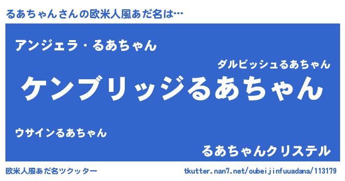 | 男性向けラノベタイトル風あだ名 | 『Re:るあちゃんから始める異世界生活』 |