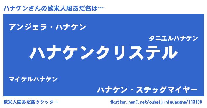 | 女子向けラノベタイトル風あだ名 | 『ハナケン伯爵の花嫁』 |