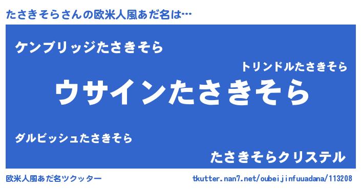 | 男性向けラノベタイトル風あだ名 | 『たさきそらの嫁は女の子じゃないと思った?』 |