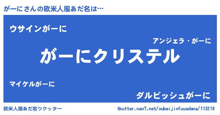 | 意味不明あだ名 | 『がーにフォーエバー』『永久保存がーに』 |