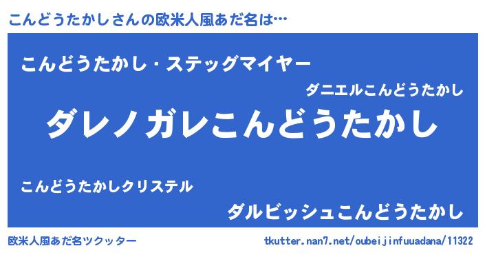 | 男性向けラノベタイトル風あだ名 | 『この素晴らしい世界にこんどうたかしを!』 |