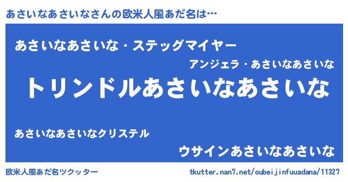 | 男性向けラノベタイトル風あだ名 | 『あさいなあさいな~年齢イコール彼女いない歴の魔法使い~』 |