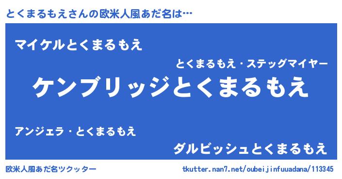 | 男性向けラノベタイトル風あだ名 | 『Re:とくまるもえから始める異世界生活』 |