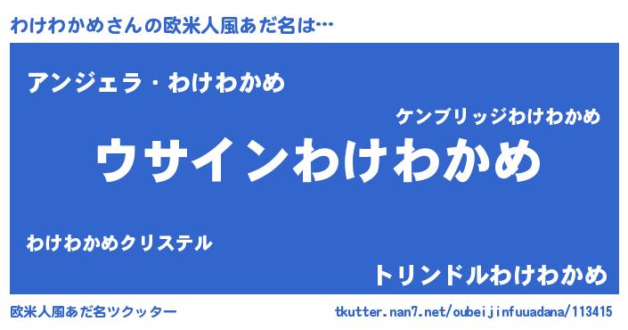 | ヒーロー風カッコイイあだ名 | 『黄金騎士ワケ』『慈愛の使者わけわかめ』 |