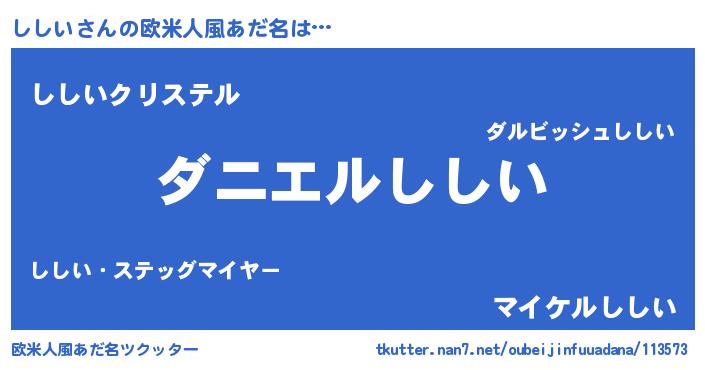 | ヒーロー風カッコイイあだ名 | 『慈愛の使者ししい』『スーパーシシイ』 |