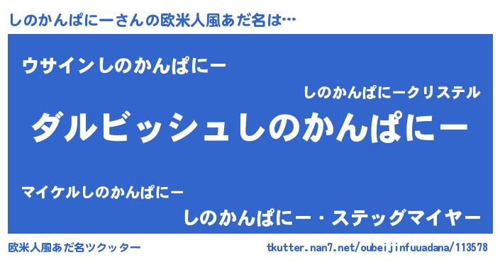 | 男性向けラノベタイトル風あだ名 | 『しのかんぱにーという概念が存在しない退屈な世界 』 |