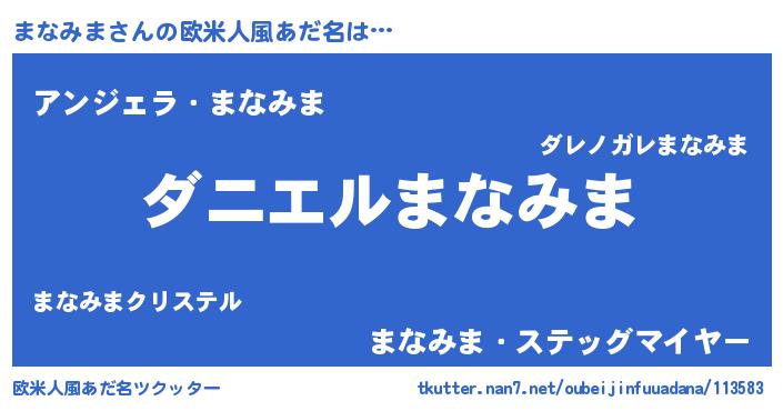 | 男性向けラノベタイトル風あだ名 | 『おまえをオタクにしてやるから、俺をまなみまにしてくれ! 』 |