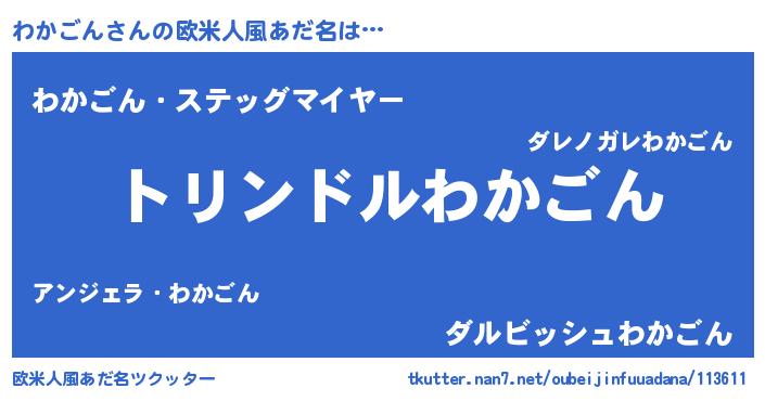 | 男性向けラノベタイトル風あだ名 | 『わかごん~年齢イコール彼女いない歴の魔法使い~』 |