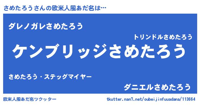 | 男性向けラノベタイトル風あだ名 | 『Re:さめたろうから始める異世界生活』 |