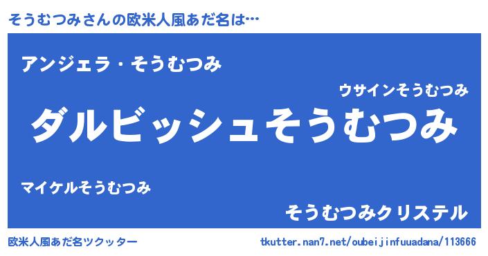| 男性向けラノベタイトル風あだ名 | 『そうむつみという概念が存在しない退屈な世界 』 |
