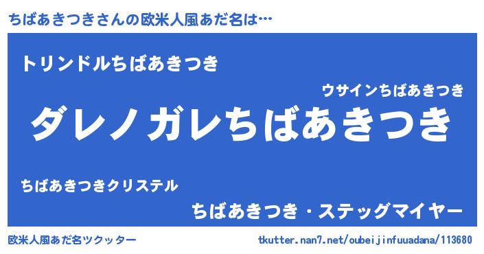 | 男性向けラノベタイトル風あだ名 | 『魔弾の王とちばあきつき』 |