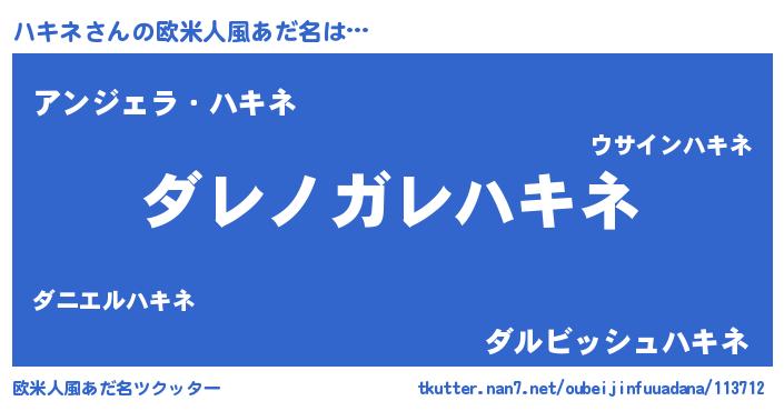 | 意味不明あだ名 | 『住所不定無職ハキネ(6歳)』 |