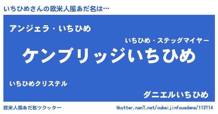 | 男性向けラノベタイトル風あだ名 | 『Re:いちひめから始める異世界生活』 |