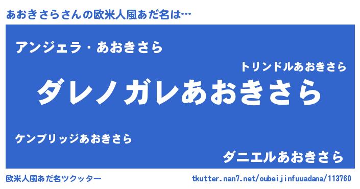 | 意味不明あだ名 | 『住所不定無職あおきさら(95歳)』 |