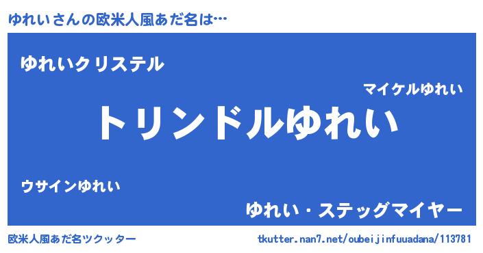| 男性向けラノベタイトル風あだ名 | 『ゆれい~年齢イコール彼女いない歴の魔法使い~』 |