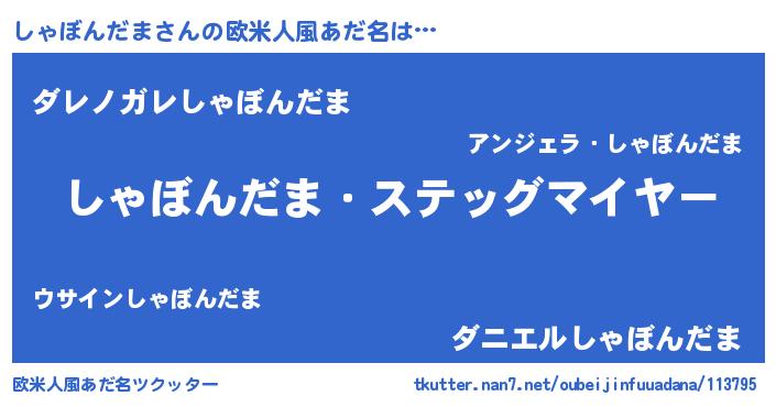 | 意味不明あだ名 | 『住所不定無職しゃぼんだま(41歳)』 |