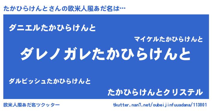 | 意味不明あだ名 | 『住所不定無職たかひらけんと(91歳)』 |