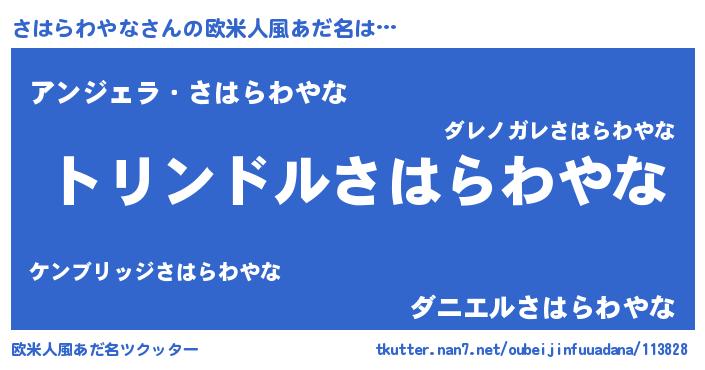 | 女子向けラノベタイトル風あだ名 | 『さはらわやなの玉の輿計画!』 |
