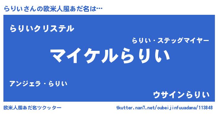 | ヒーロー風カッコイイあだ名 | 『スーパーラリイ』『ウルトラらりいマン』 |