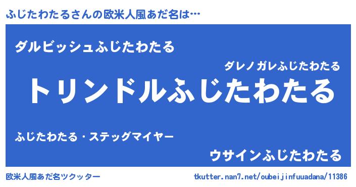 | 男性向けラノベタイトル風あだ名 | 『ふじたわたる~年齢イコール彼女いない歴の魔法使い~』 |