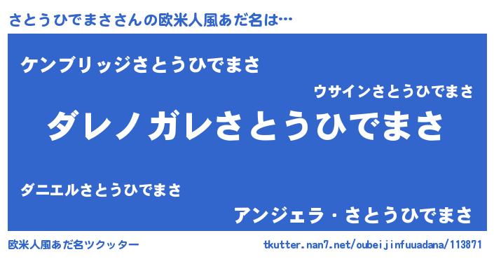 | 男性向けラノベタイトル風あだ名 | 『魔弾の王とさとうひでまさ』 |