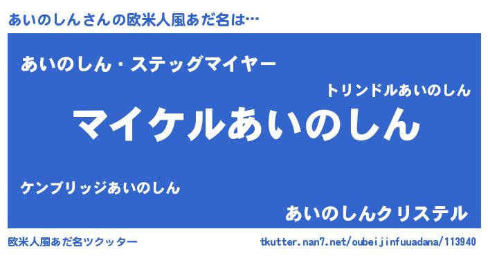 | 男性向けラノベタイトル風あだ名 | 『あいのしんの憂鬱』 |