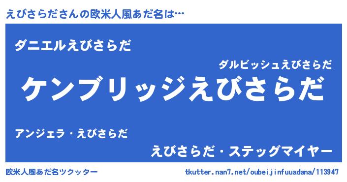 | ヘコむあだ名 | 『えびさらだ(笑)』『えびにゅー』 |