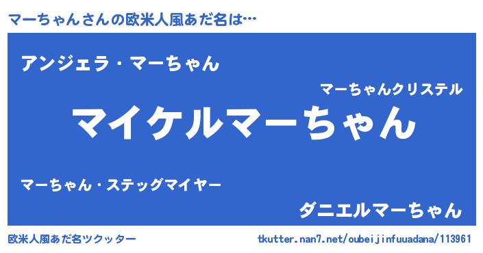 | 女子向けラノベタイトル風あだ名 | 『(仮)マーちゃんのやんごとなき事情』 |