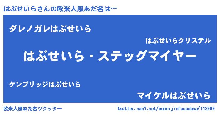 | 意味不明あだ名 | 『住所不定無職はぶせいら(56歳)』 |