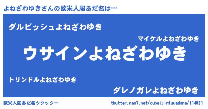 | ポケモン風あだ名 | 『ヒヨネザワユキ』『ゼニヨネ』 |