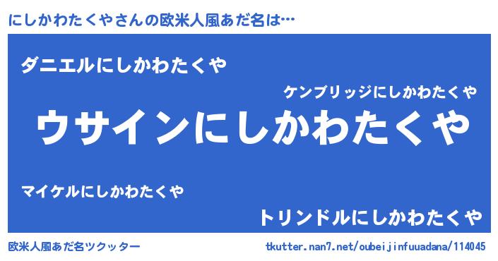 | 女子向けラノベタイトル風あだ名 | 『にしかわたくや様がみてる』 |