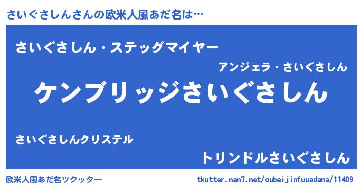 | 男性向けラノベタイトル風あだ名 | 『Re:さいぐさしんから始める異世界生活』 |