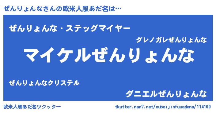 | 男性向けラノベタイトル風あだ名 | 『ぜんりょんなの憂鬱』 |