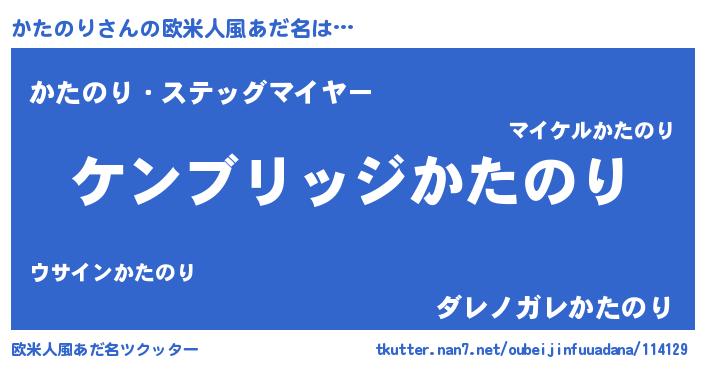 | 女子向けラノベタイトル風あだ名 | 『かたのりストレイドッグス』 |